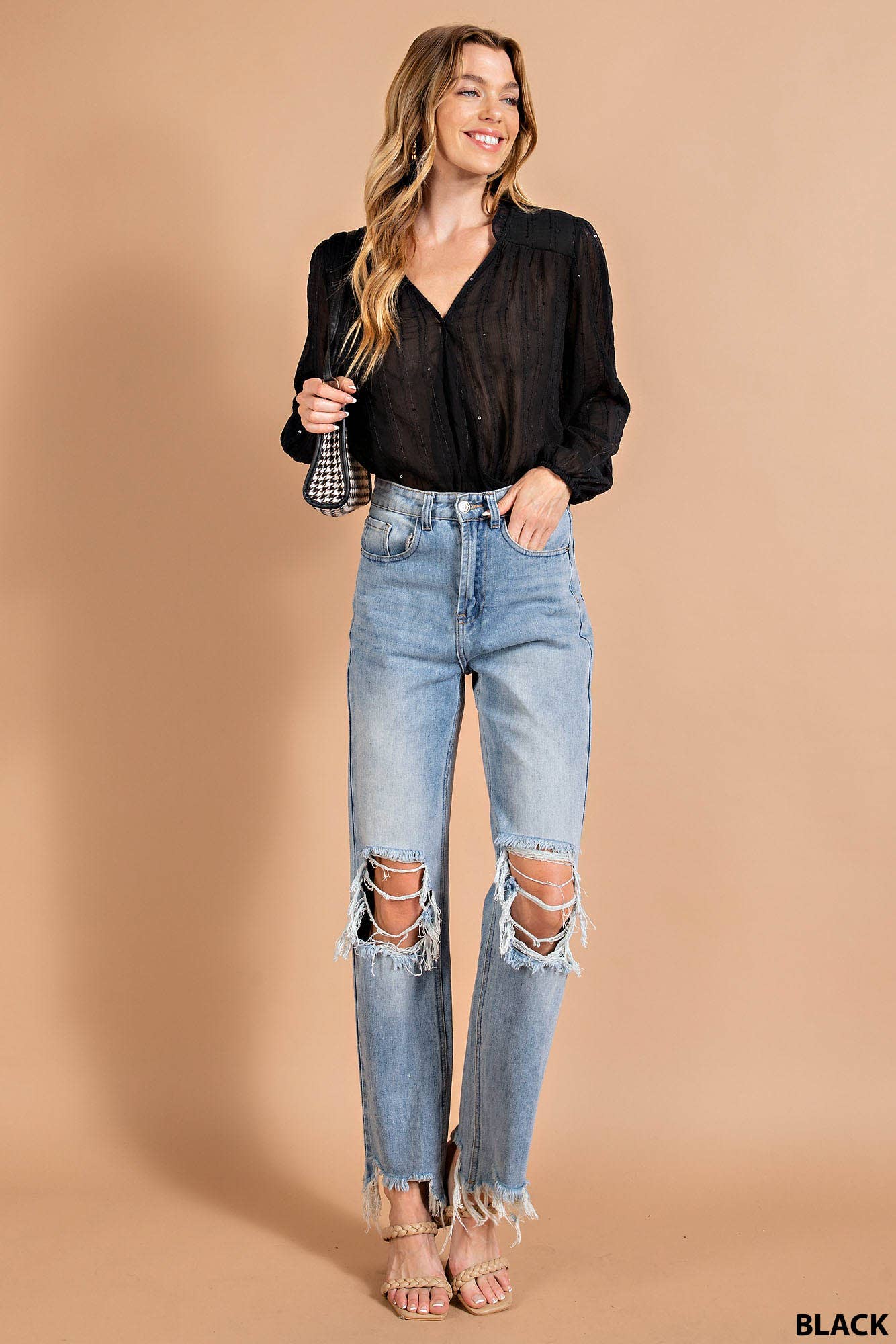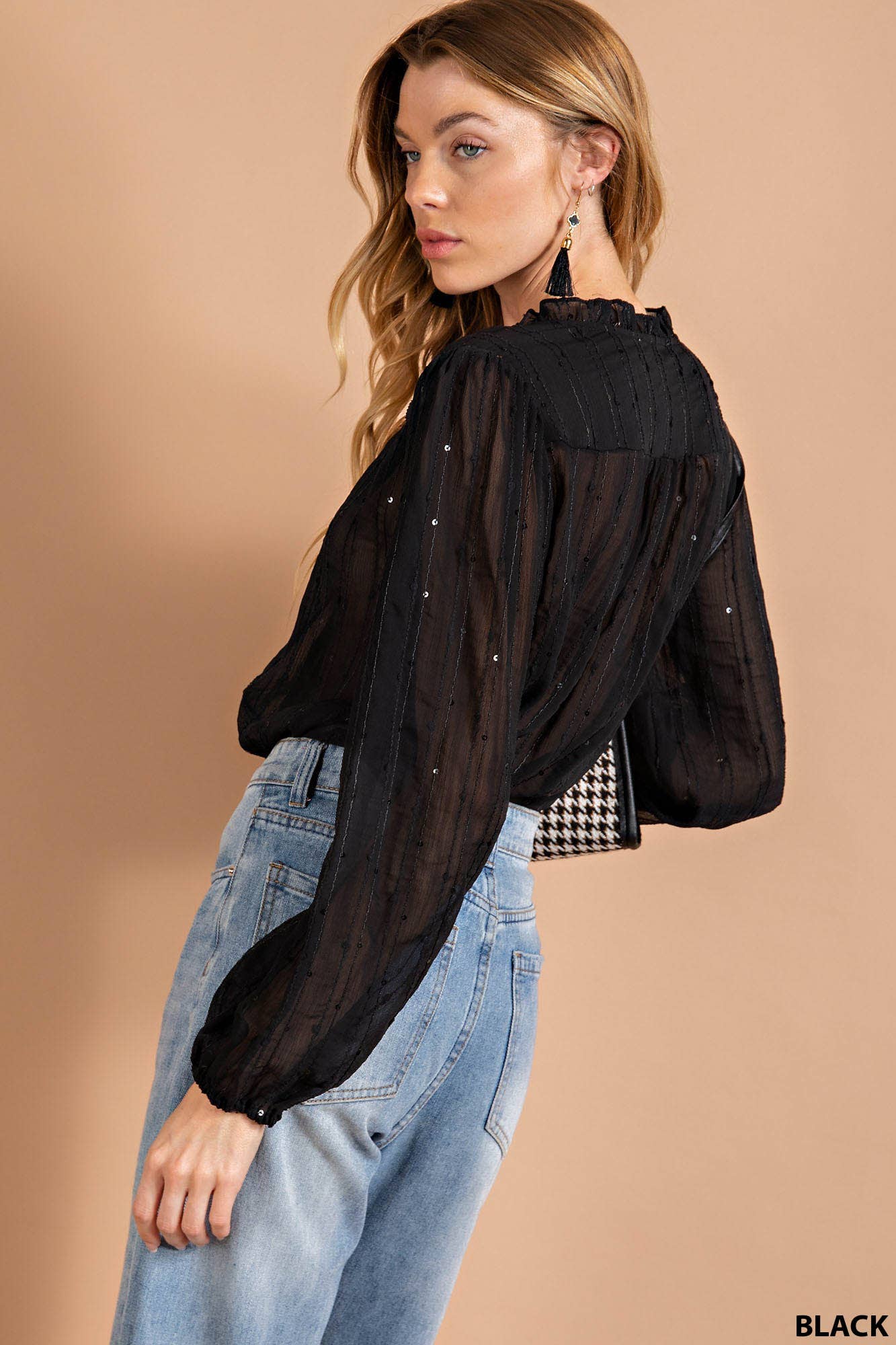Airy & Sheer, this beautifully versatile bodysuit can be dressed up or down, making it perfect for any occasion! Live your best life in the perfect amount of sparkle. Wear this easy look all year, great on its own and works fabulously with layers! Cross over style neckline with snap-bottom of the body suit also has snaps.