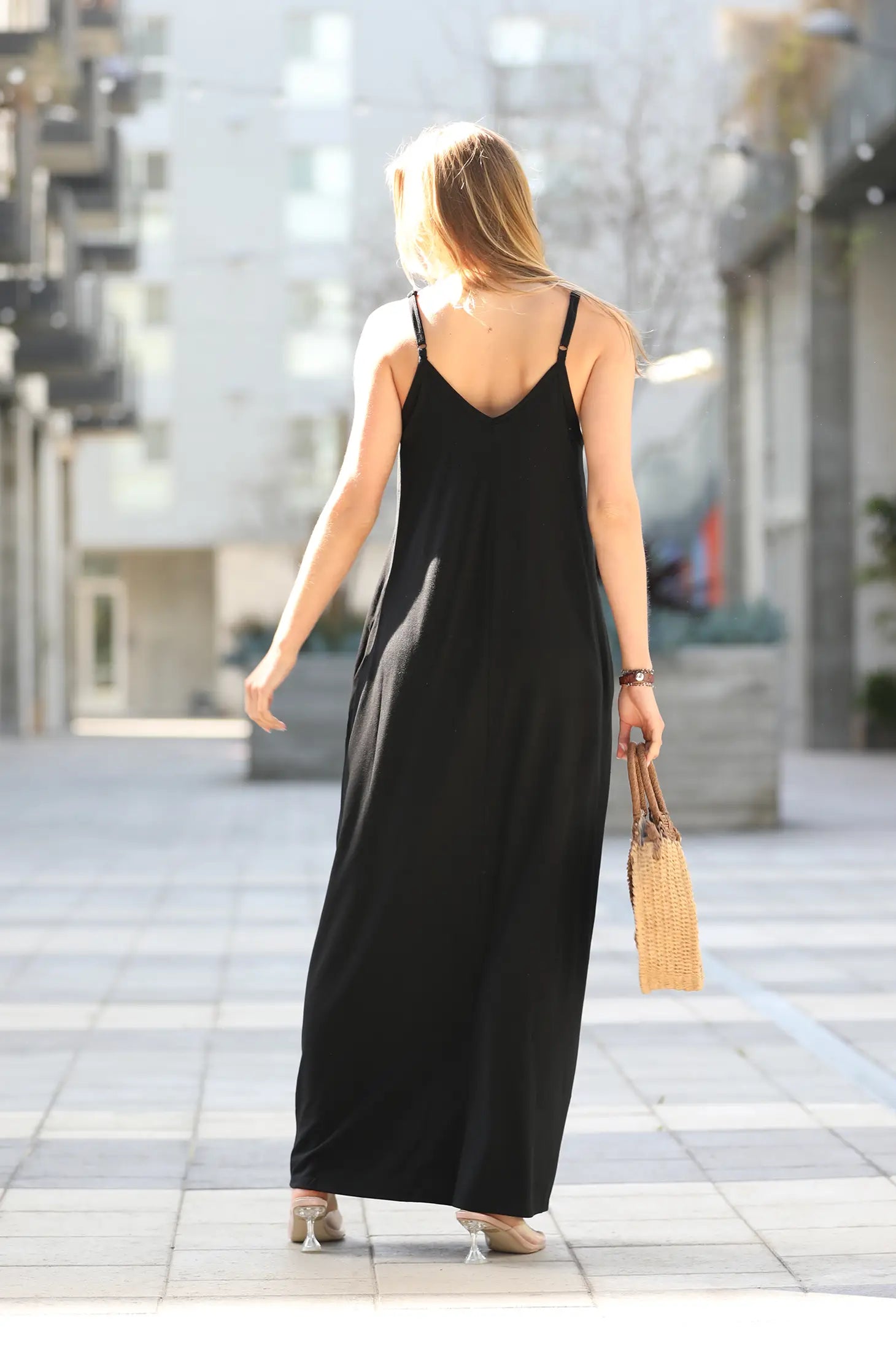 Tip: sizing down would still fit loosely, sizing up would just add some extra sway. This true Maxi almost hits the floor. Adjust these Cami Style Straps for the perfect fit. *We also like to throw a knot in the bottom of the skirt just because we're cool like that.*