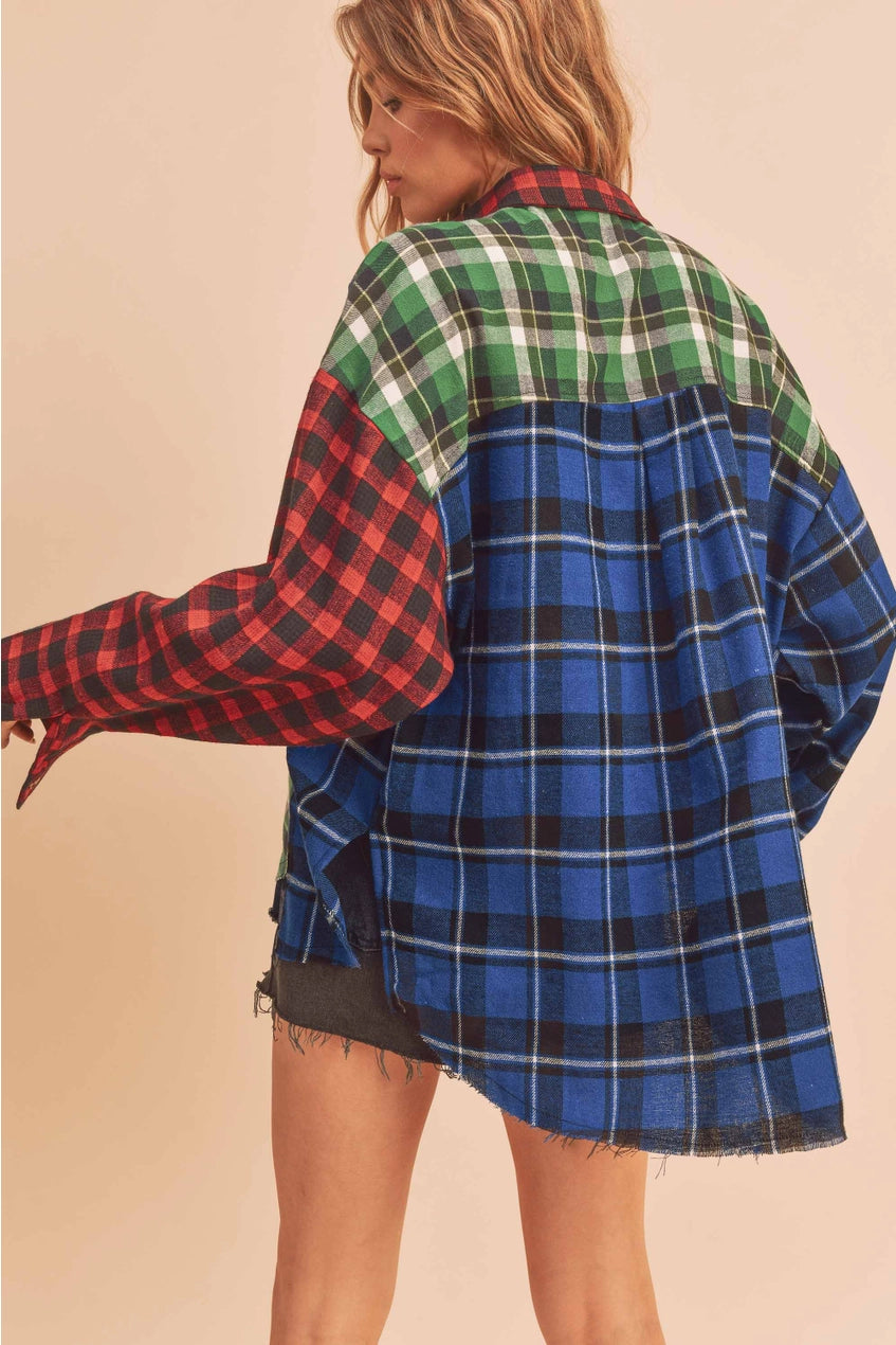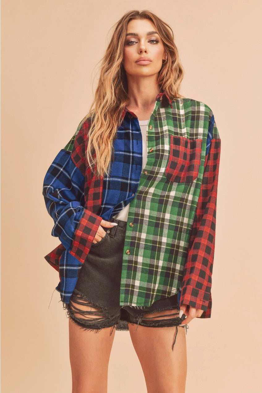 We have updated your favorite oversized flannel, TGIFlannel features a spliced construction for a patchwork look and asymmetrical hem we love for the edgy feel. Color Blocking gives this staple a unique punch.